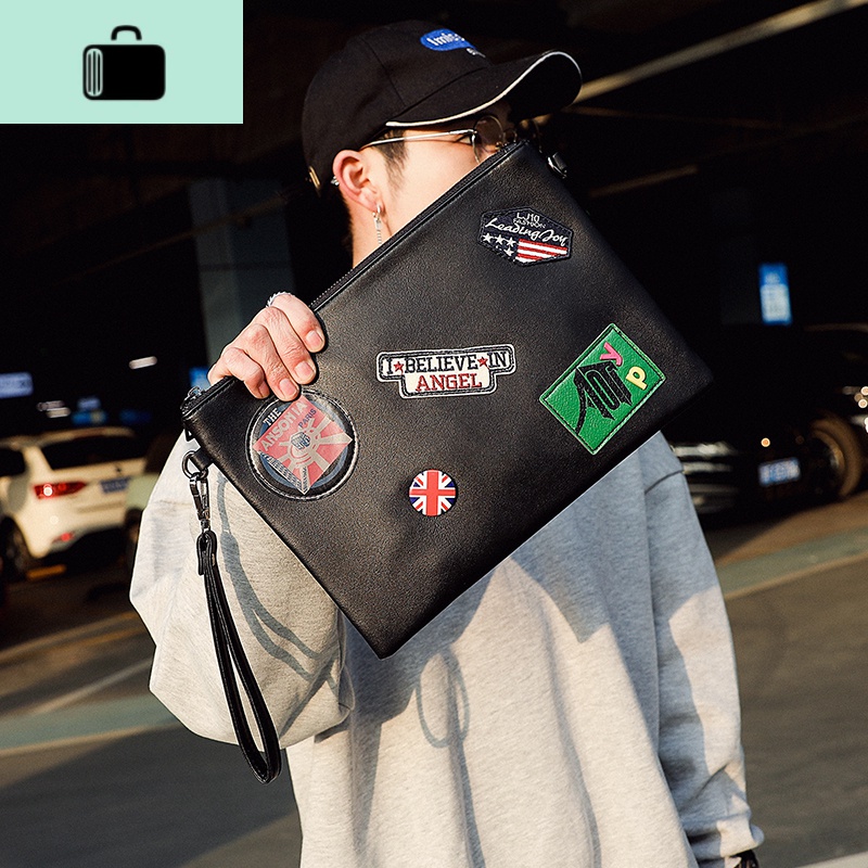 韩版手拿包 潮爆徽章手拿包 男女勋章信封包单肩包ipad手腕包新款NEW LAKE 黑色¥74.10热销中 -