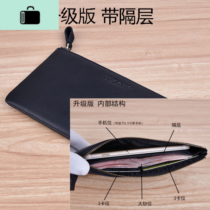 超薄男士皮长款钱包拉链手拿包简约手工软牛皮日韩青年女手机包NEW LAKE男士手拿包 黑色大号20.5X10cm¥169.10热销中 -