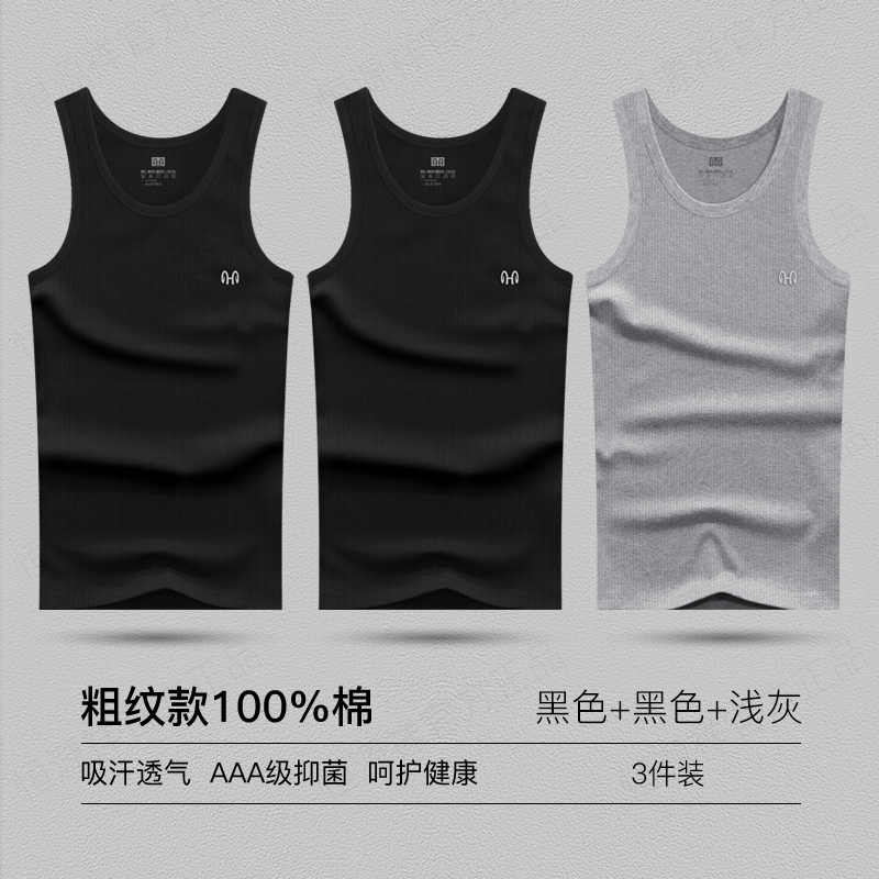 恒源祥男士背心纯棉薄款夏粗螺纹美式背心男运动健身白色修身无袖 165/M体重110斤以下 粗纹款3件装黑色+黑色+浅灰每200元减30元¥128.00热销中 -