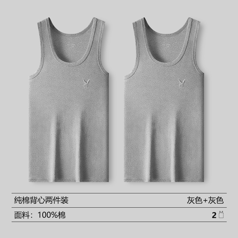 花花公子纯棉男士背心男款夏季全棉男生运动吸汗白色内穿打底穿运 M 2件装100%棉灰色+灰色¥109.00热销中 -