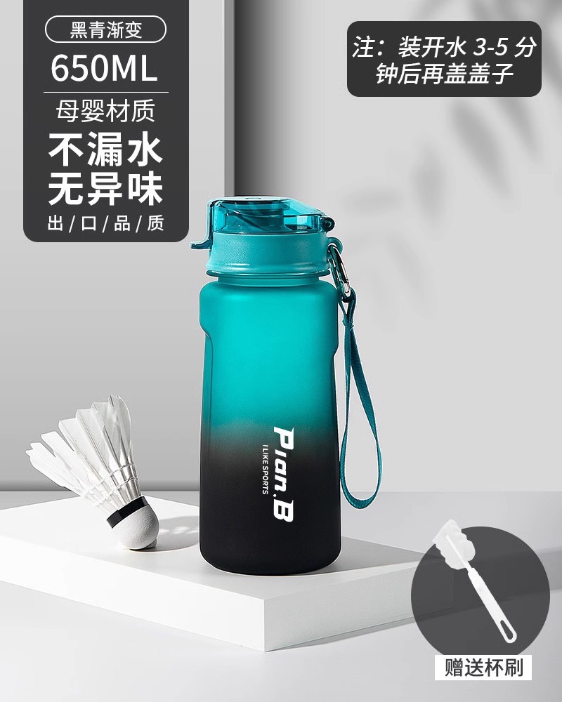 运动大容量水杯男士健身塑料防摔便携学生水壶瓶夏季高颜值杯子 渐变蓝-母婴材质650ml手痕款送赠品 均码满1件打9折¥36.00热销中 -