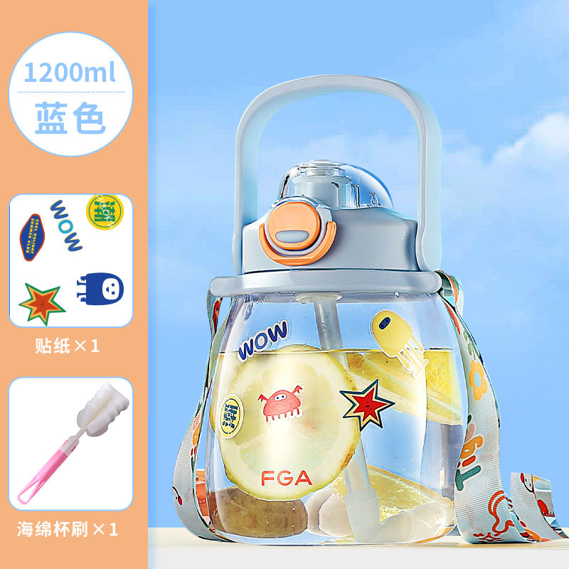 富光水杯新款吸管杯高颜值ins大肚杯运动水杯塑料杯食品级杯子ins 蓝色1200ml-贴纸杯刷 均码¥46.00热销中 -