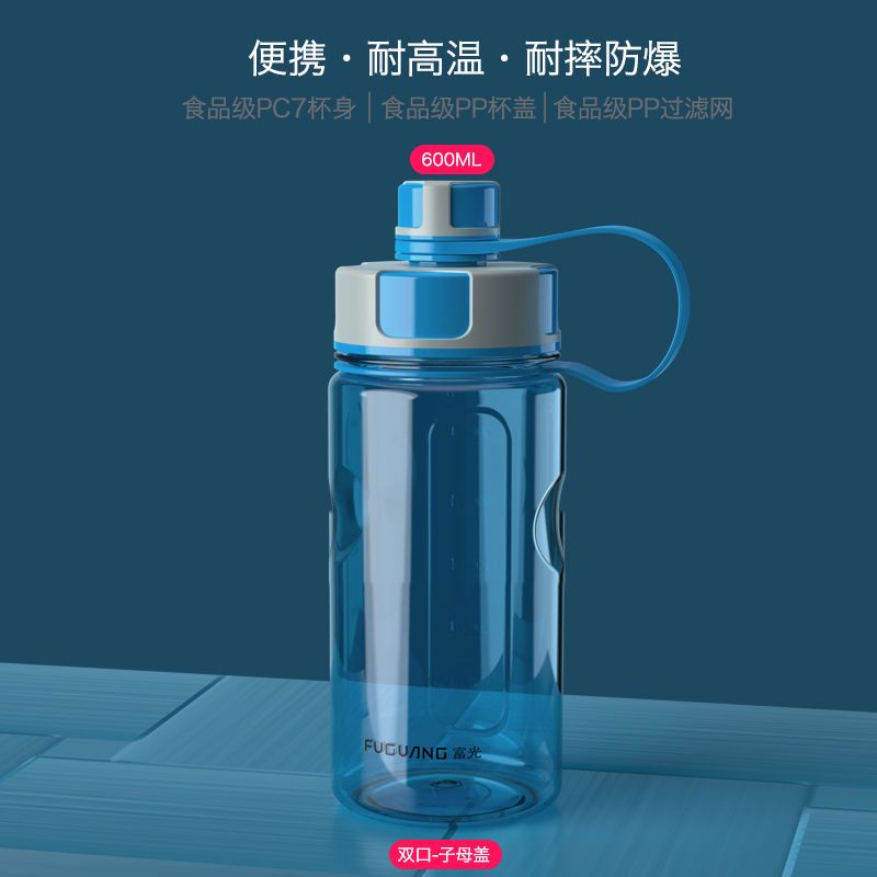 富光太空杯男女士运动健身茶杯防摔便携水壶户外大容量塑料水杯子_795 双口-600毫升-蓝色-带过滤网 默认尺寸¥21.80热销中 -