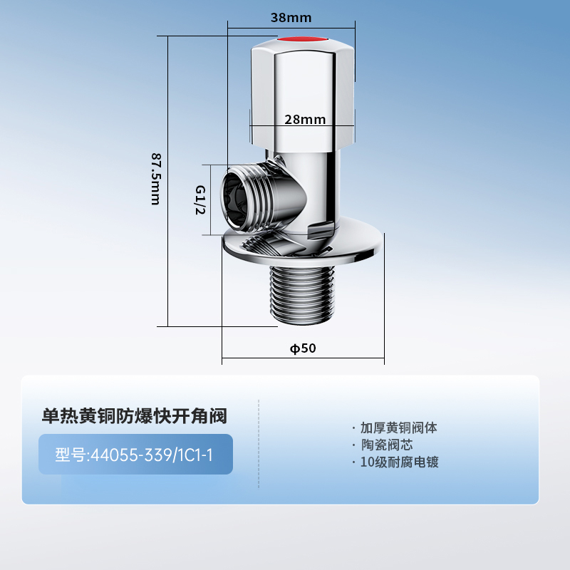 九牧(JOMOO)角阀精铜三角阀加厚冷热四分止水阀八字阀马桶热水器角阀厨卫配件740551C1-1/440551C1-1 单热角阀44055满1件打9.9折¥24.90热销中 -