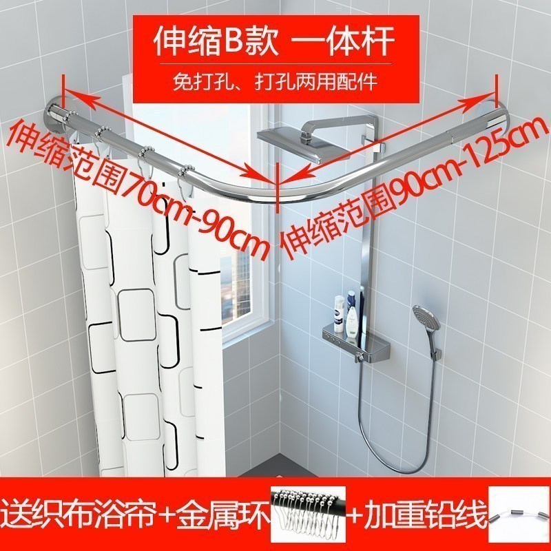 浴室防水布免打孔弧形淋浴卫生间隔断帘浴帘杆套装洗澡间帘子挂帘_1 0x0厘米 B款一体杆免打孔/打孔(送织布浴帘+金属环+加重铅线)¥200.28热销中 -