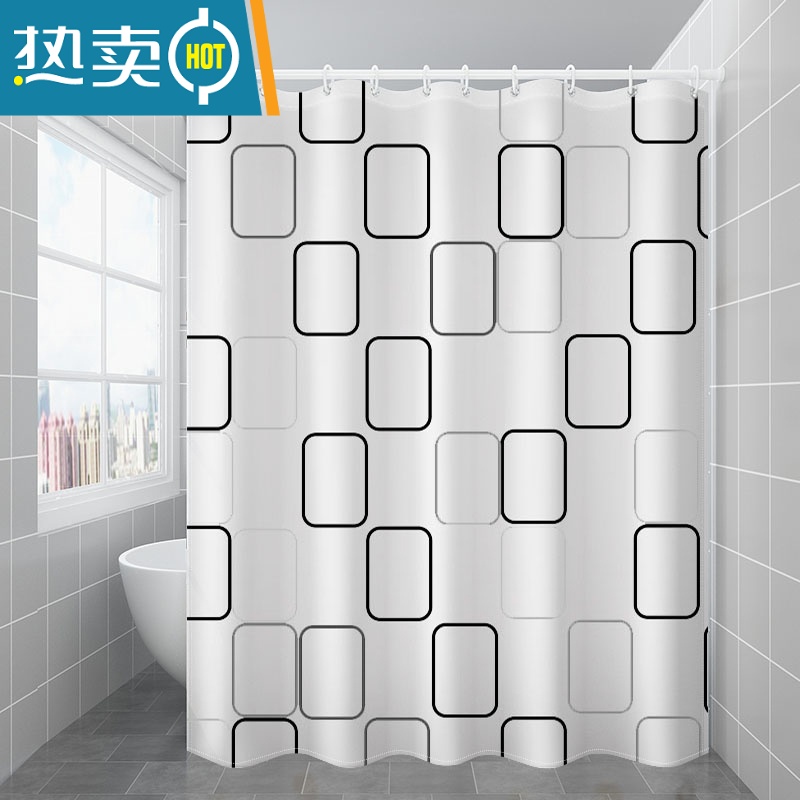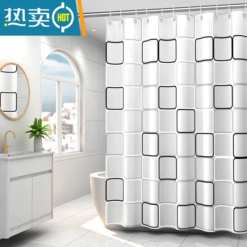 浴帘套装免打孔加厚防水帘浴室窗帘卫生间洗澡挂帘隔断帘子布_60_677 300宽*200高 单帘:帘+送挂钩+精致绑带¥300.52热销中 -