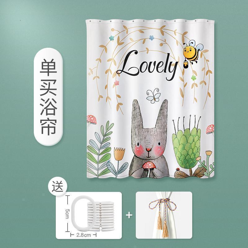 XIANCAI卫生间浴帘套装免打孔浴室防水帘门帘子加厚卡通浴帘隔断窗帘挂帘 单浴帘(适用墙宽90-110cm)宽120*高180+环+绑 小灰猫¥50.00热销中 -