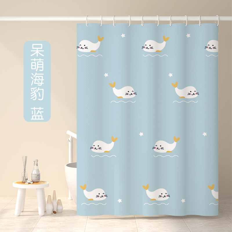 卫生间浴室浴帘防水布套装免打孔洗澡间门帘窗帘防霉隔断挂帘淋浴 套装布帘120宽*180高+白伸缩杆90-160 蓝色海豹满1件打9折¥80.00热销中 -