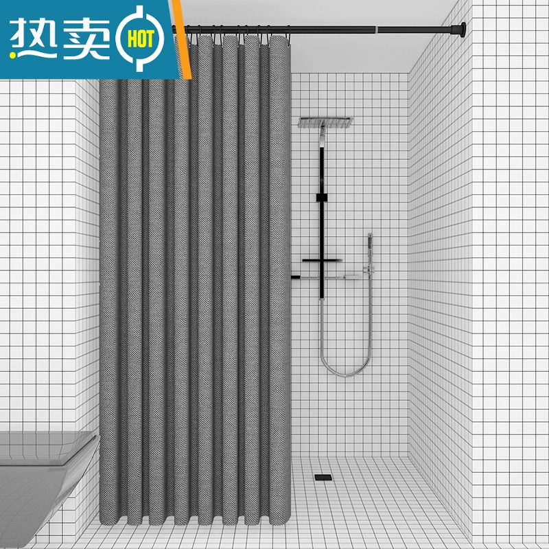 北欧浴室防水挂帘卫生间免打孔浴帘杆套装厕所窗帘遮光洗澡隔断帘_9 默认尺寸 【套装送挂钩】180宽*200高+白杆140-260¥228.08热销中 -