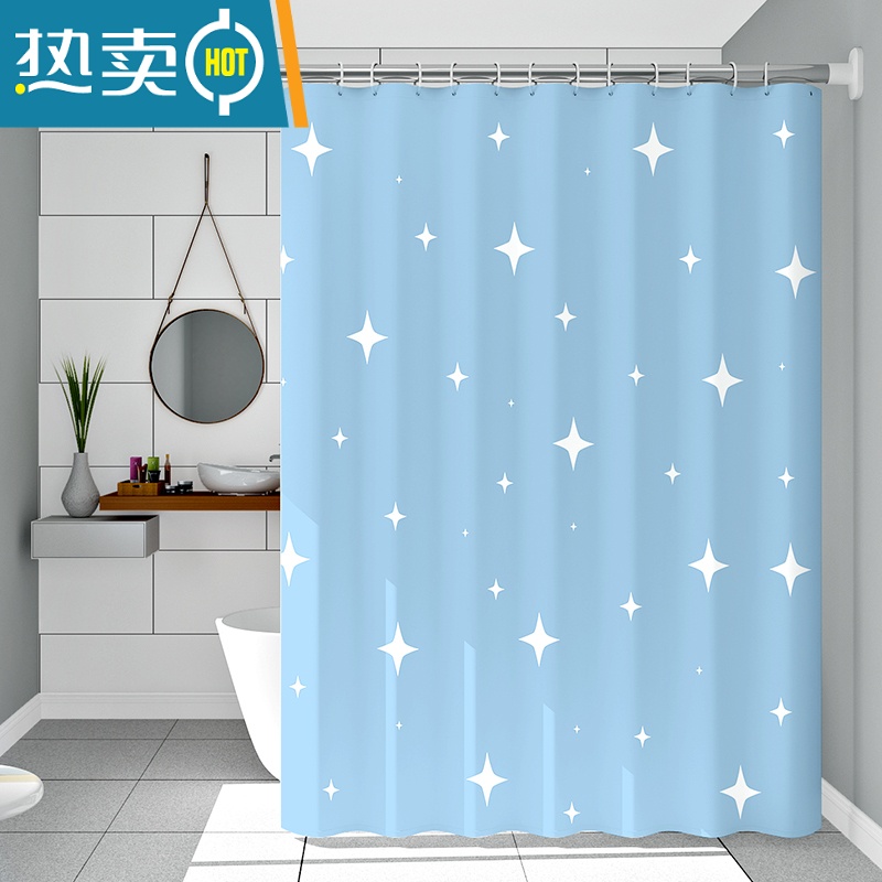 XIANCAI浴室防水浴帘套装加厚保暖隔断帘淋浴帘卫生间门帘挂帘免打孔 套装宽200*高200+2.4伸缩杆+挂环 塑料蓝星星¥66.00热销中 -