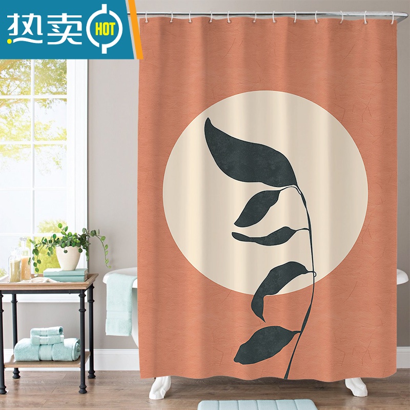 北欧风ins大理石浴帘洗手间防水布隔断帘子卫生间挂帘套装免打孔_1 默认尺寸 心灵归宿浴帘180宽*高180cm送钩¥138.52热销中 -