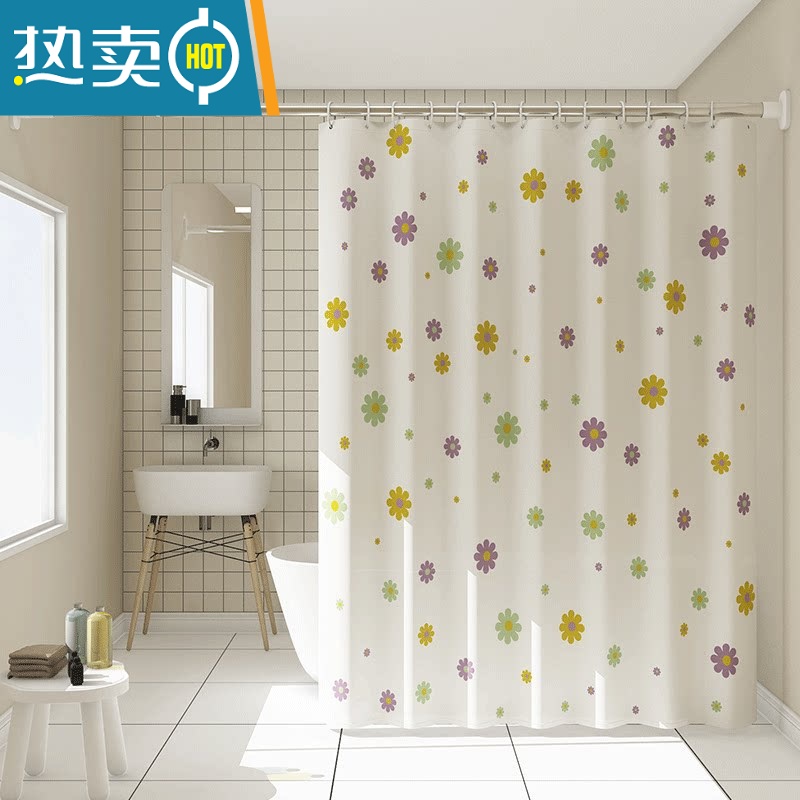 XIANCAI卫生间加厚浴帘布浴室防水浴帘套装免打孔浴室门帘浴帘防水布 宽200*高240+伸缩130-240杆+环 田园小花超强防水防霉+欧盟环¥115.00热销中 -