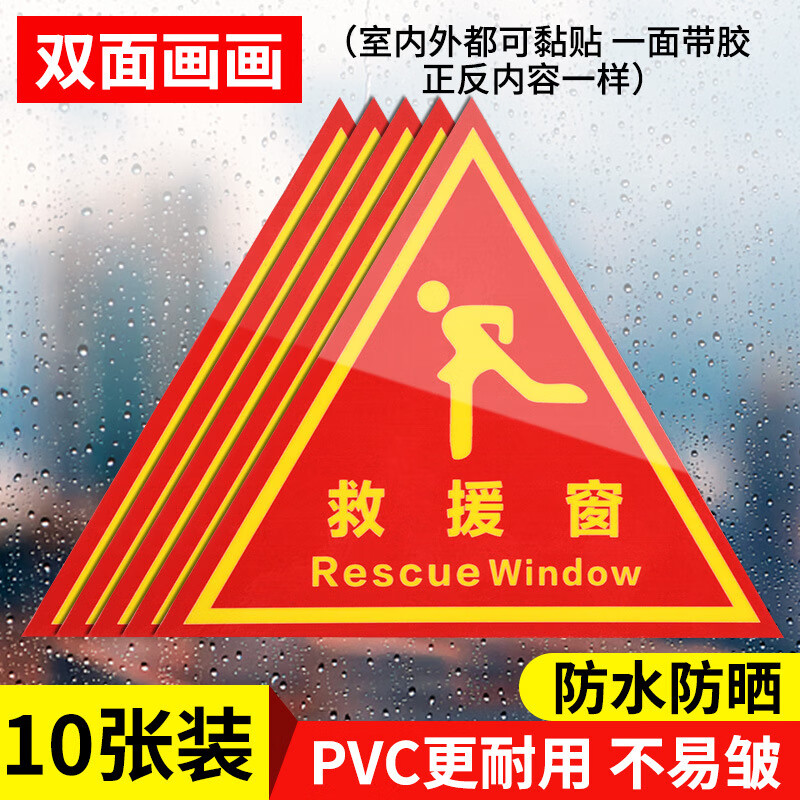 自营 谋福 消防安全标识牌 应急逃生紧急防水标示贴 【10张救援窗 (背面带胶)10x10cm】¥9.00热销中 -