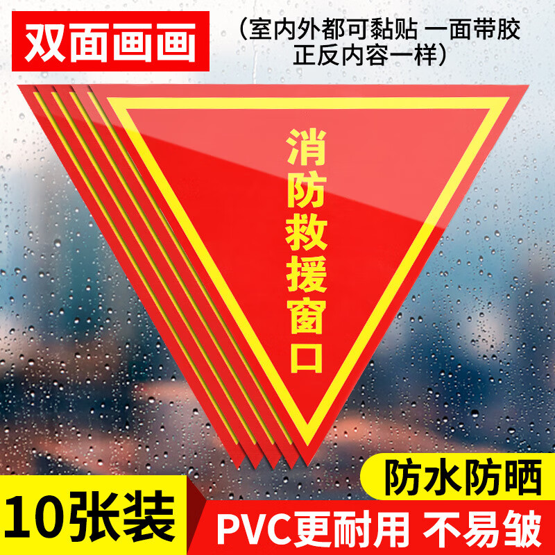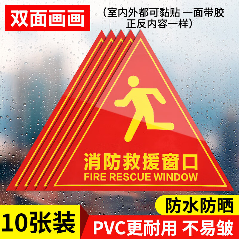 自营 谋福 消防安全标识牌 应急逃生紧急防水标示贴【10张消防救援窗(双面款)10x10cm】¥18.00热销中 -