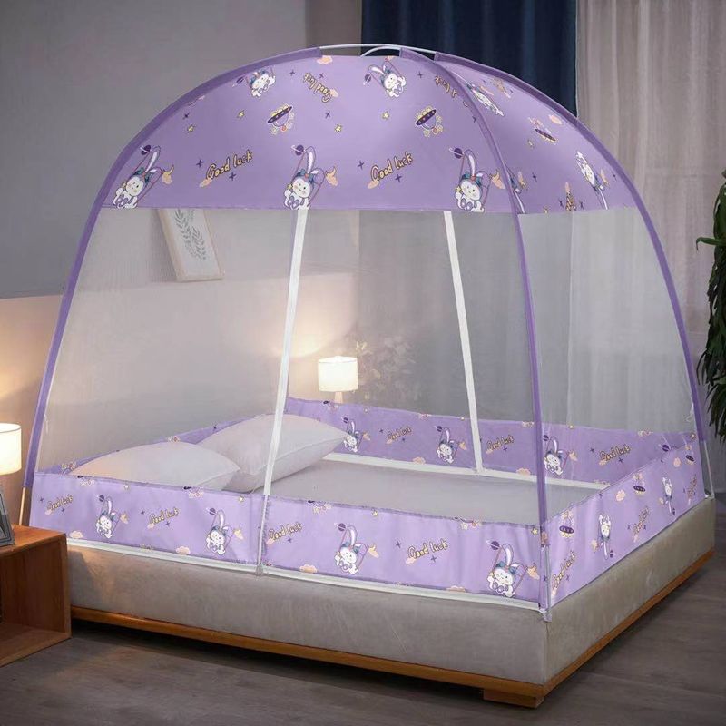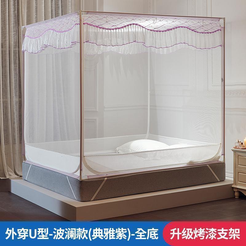 蚊帐家用儿童防摔拉链款1.5米1.8m床蒙古包宝宝夏季支架纹帐1.2床_391 1.8m(6英尺)床 波澜U型-典雅紫(全底)(烤漆支架)¥276.28热销中 -