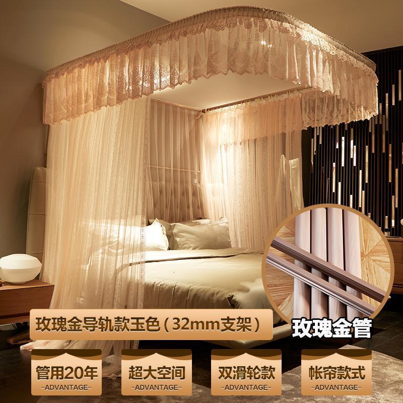 导轨蚊帐家用1.8m/1.5米床公主风加密加厚U型支架2米床纹账_3_179 1.8*2.2m床 风吟-玫瑰金款玉色¥438.28热销中 -