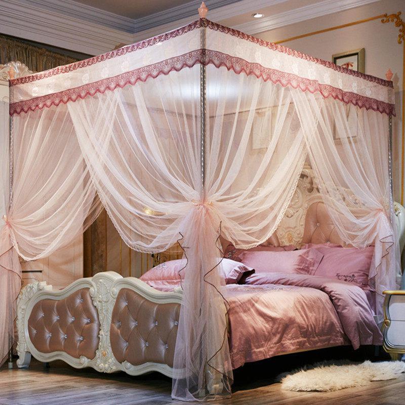 蚊帐1.8m双人家用公主风1.5m床三开落地式宫廷加密加厚支架_156 2.0m(6.6英尺)床 拼色款(玉色)加厚加粗25mm¥196.28热销中 -