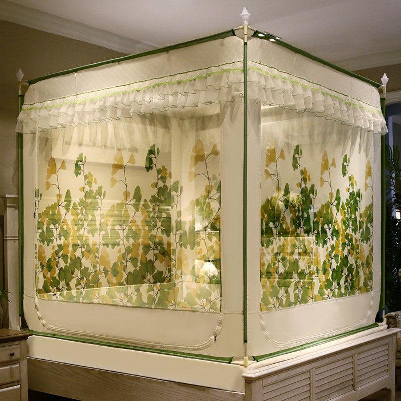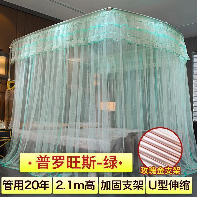 新款蚊帐落地1.8m床1.5m双人家用加密加厚公主风U型伸缩支架2.2米_318 1.5m(5英尺)床 普罗旺斯绿(奢华宫廷式,铝合金升级支架)¥316.52热销中 -
