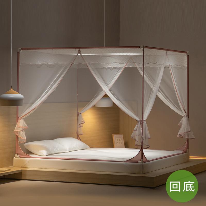 支架蚊帐床上防摔儿童拉链简约三开加密1.5m1.8米2床家用_496 1.8m(6英尺)床 豆沙粉(回底)¥396.28热销中 -