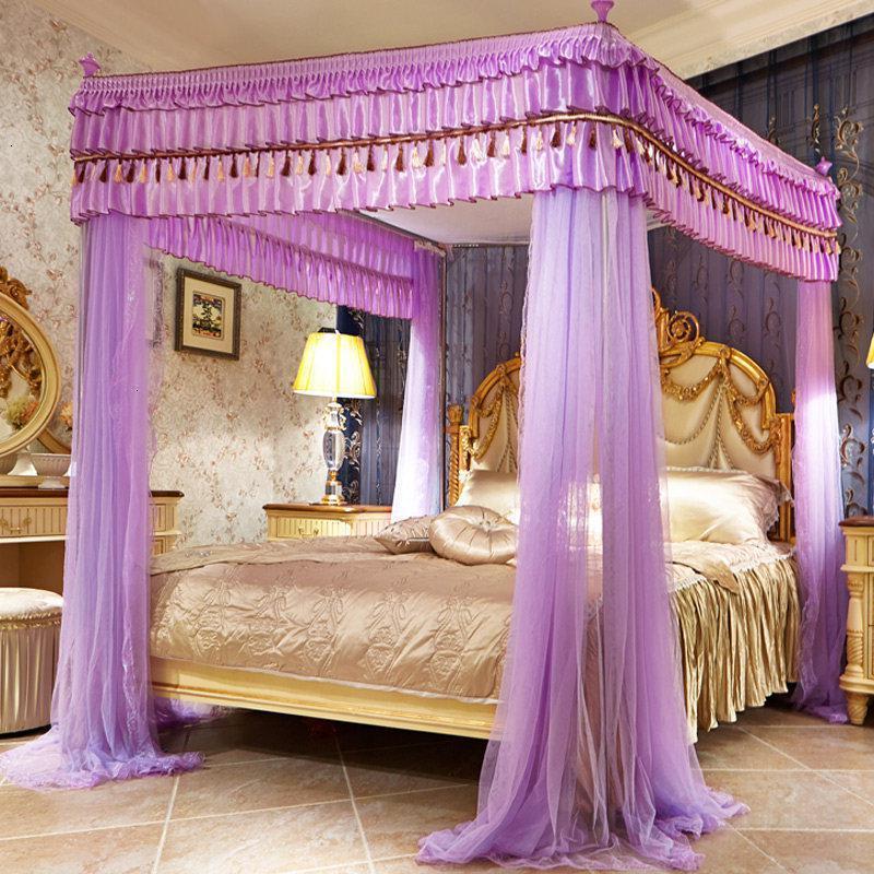 新款四角导轨蚊帐加密加厚1.8mu型轨道双人家用1.5米公主风_802_609 1.8m(6英尺)床 A13紫色(导轨款+四角落地,又好看又实用)¥698.28热销中