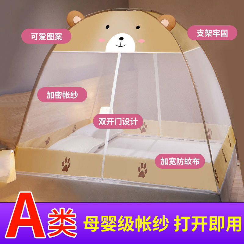 南极人免安装蒙古包蚊帐1.8米双人床1.5m纹帐家用1.2新款0.9m单人 1.5m(宽1.5x长2.0)免安装 小熊-立体耳朵款-黄¥67.00热销中 -