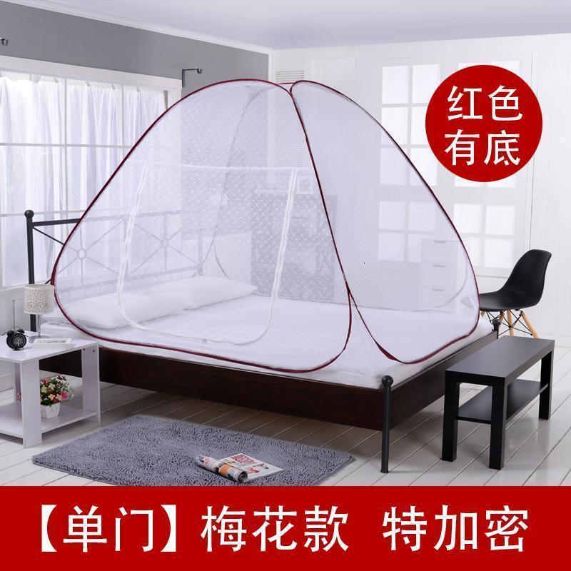 蒙古包蚊帐1.8m床双人家用1.5米野外1.2户外免安装露营折叠式帐篷_20_151 1.2m(4英尺)床 【梅花款】红色单门送风扇杆¥100.28热销中 -
