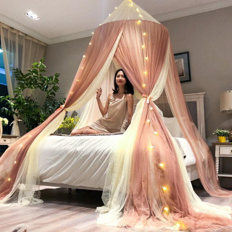 新款公主风吊顶蚊帐圆顶吊帐1.5米床1.8m家用1.2米免安装2米_831_400 1.2*2M床 倾城-豆沙黄-送灯¥198.28热销中 -