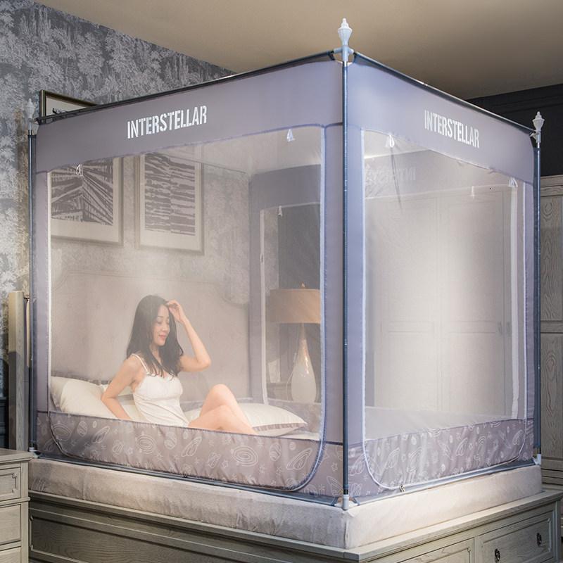 A8—双层新款蚊帐1.8m床三开家用双人1.5加粗2米2.2落地纹账_104 1.8*2.2m床 金边-浅灰(配尊品木纹支架)¥678.28热销中 -
