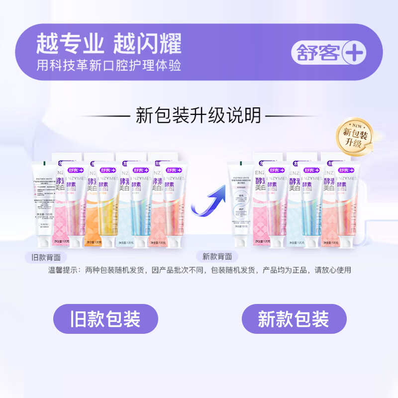自营 舒客酵素美白牙膏120g*3+红花清火牙膏120g (共4支新老包装随机发)¥87.89热销中
