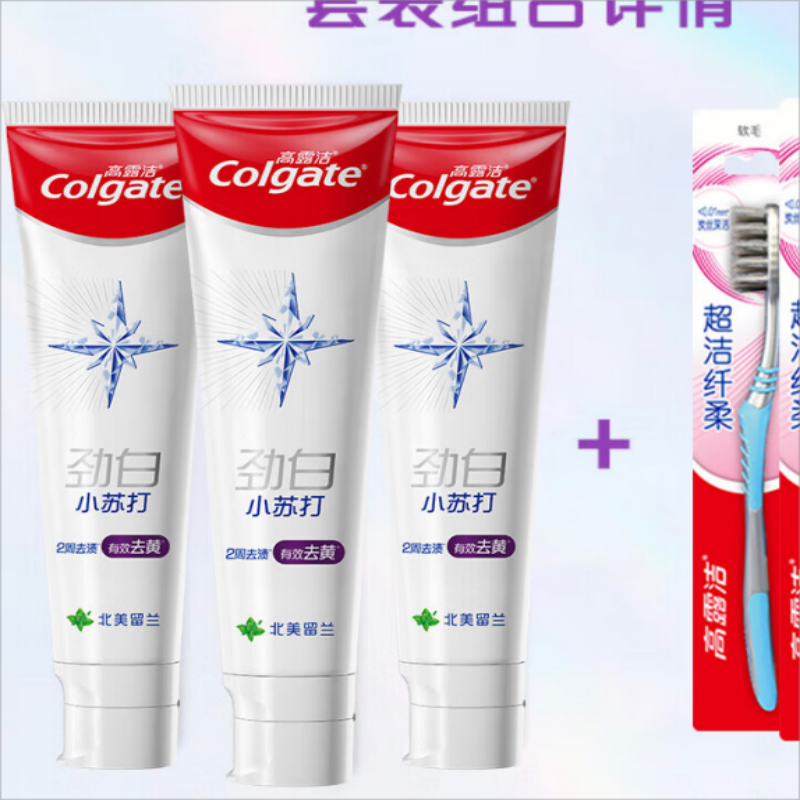 自营 高露洁高露洁劲白小苏打留兰香120g+劲白小苏打茉莉香120g+冰爽龙井120g+牙刷+牙刷¥40.70热销中