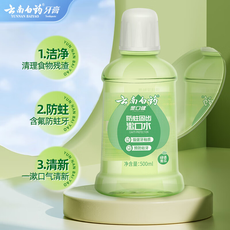 自营 云南白药 漱口水含氟防蛀 清新口气减洁净口腔温和0酒精 青瓜味 500ml*2¥50.00热销中