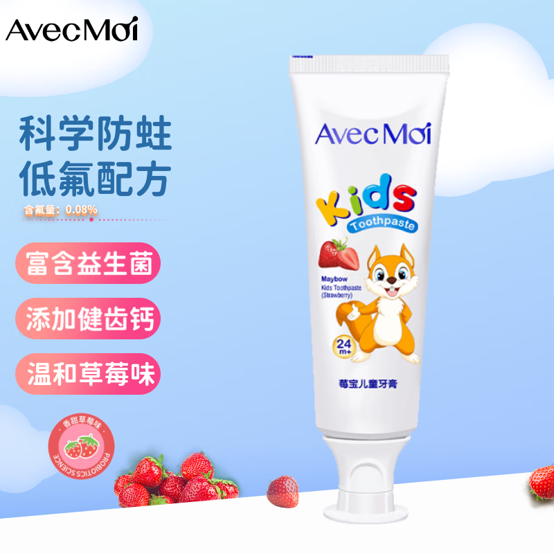 自营 Avec Moi 儿童牙膏 益生菌低含氟可6-12岁 3-6岁换牙期草莓味50g¥64.00热销中