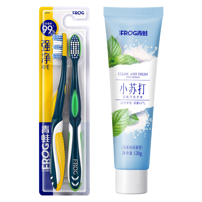 自营 青蛙(FROG) 成人套装系列A 双效优+系列987男士牙刷*2支(颜色随机)+清新净齿牙膏120g*1支GH962¥50.60热销中