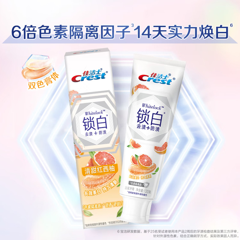 自营 佳洁士 香氛锁白牙膏 美白去牙渍含氟防蛀清新 清甜西柚 120g (包装随机)¥19.90热销中