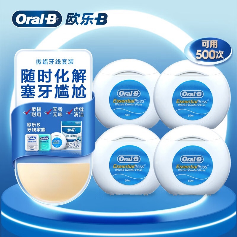 自营 欧乐-B专业洁齿微蜡牙线 超细便携 50m*4盒装超细扁牙线细滑线 清洁齿缝¥117.00热销中