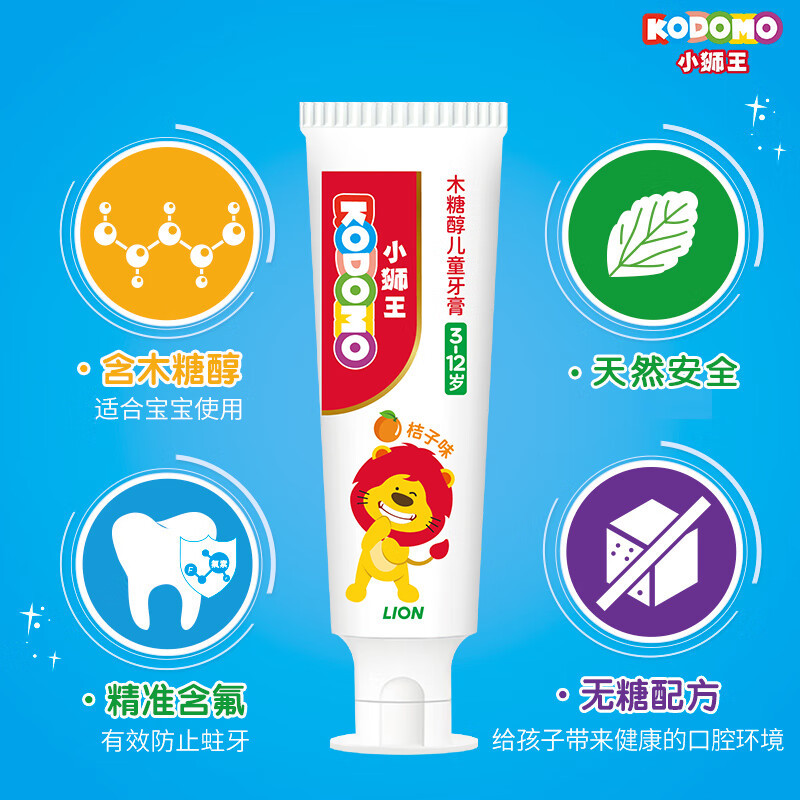 自营 狮王(Lion)小狮王儿童国产牙膏3-12岁桔子味50g含木糖醇防蛀牙固齿¥20.00热销中