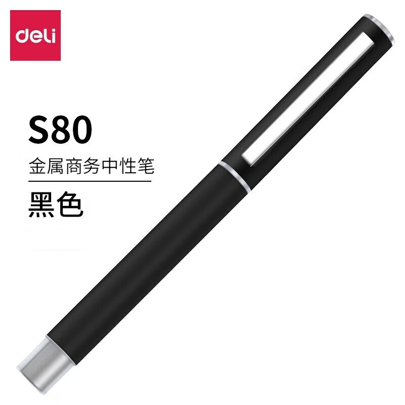 自营 得力(deli)金属商务0.5中性笔签字笔书写用笔男女学生 办公水笔 0.5mm子弹头金属黑 S80 12支¥130.64热销中