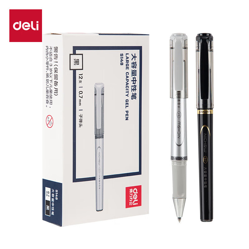 自营 得力(deli)0.7mm大容量 中性笔水笔子弹头商务 签字笔 12支/盒DL-S148¥26.90热销中