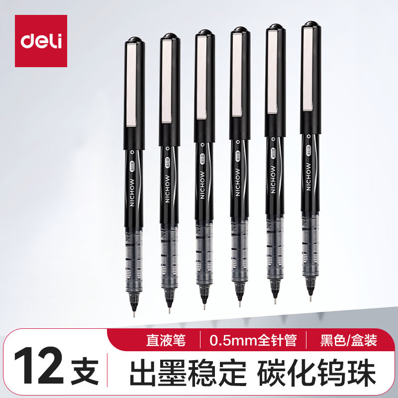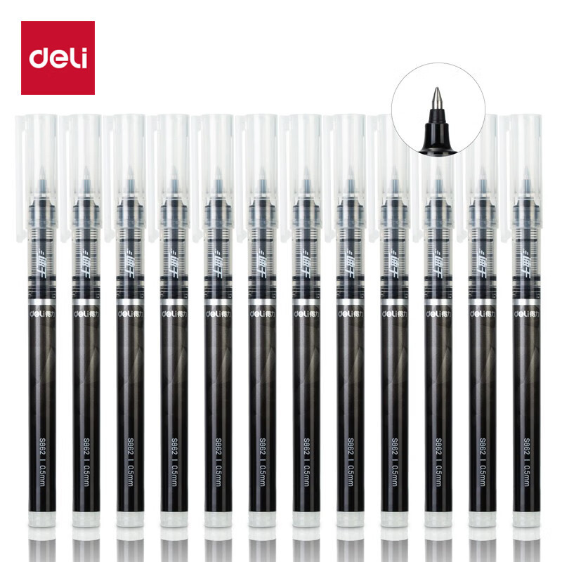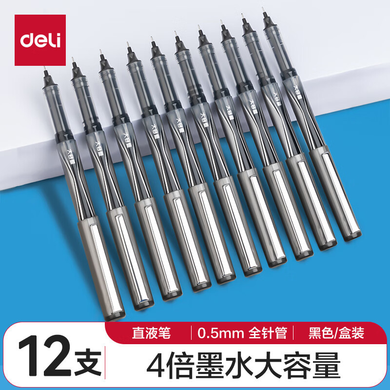 自营 得力直液式走珠笔中性笔直液笔0.5mm针管式学生用签字笔 考试可用文具用品 S657 全针管直液笔(12支黑色)¥20.36热销中
