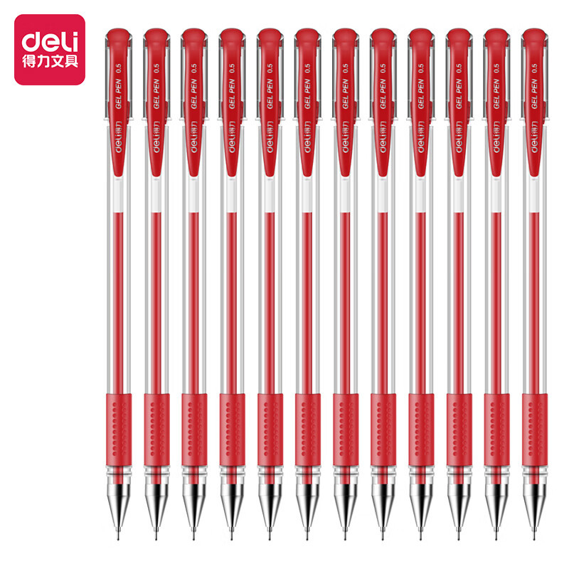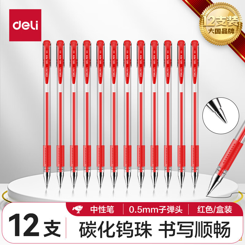 自营 得力 (deli)0.5mm办公 中性笔 水笔签字笔 12支/盒红色 34567 办公用品¥12.29热销中