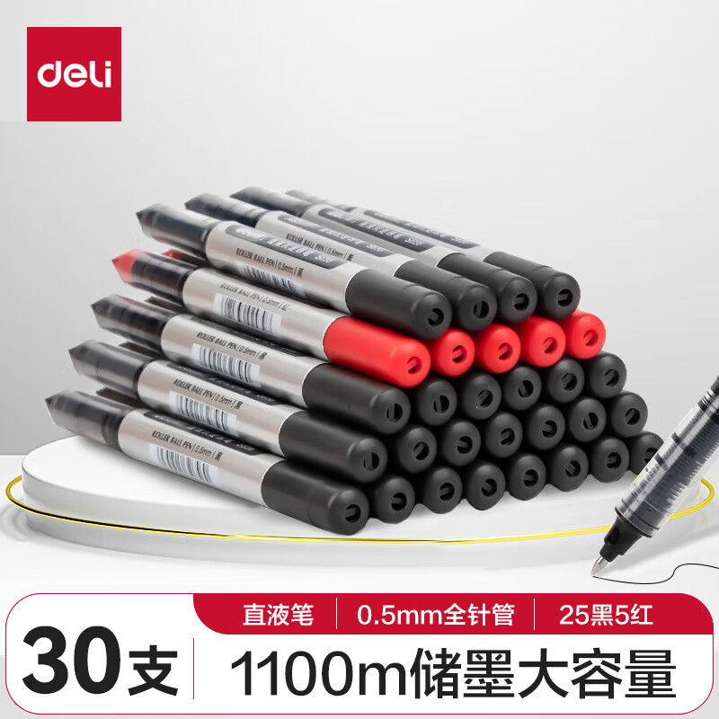 自营 得力(deli)直液笔 0.5mm子弹头中性笔 签字笔走珠笔水笔 25黑 5红 30支/盒 33988¥44.60热销中