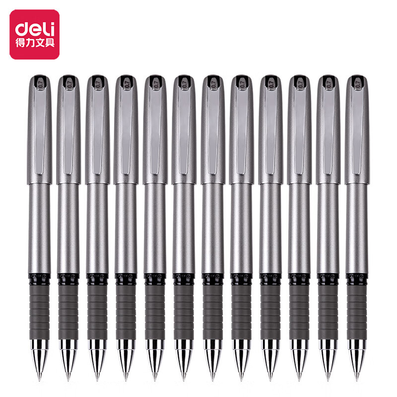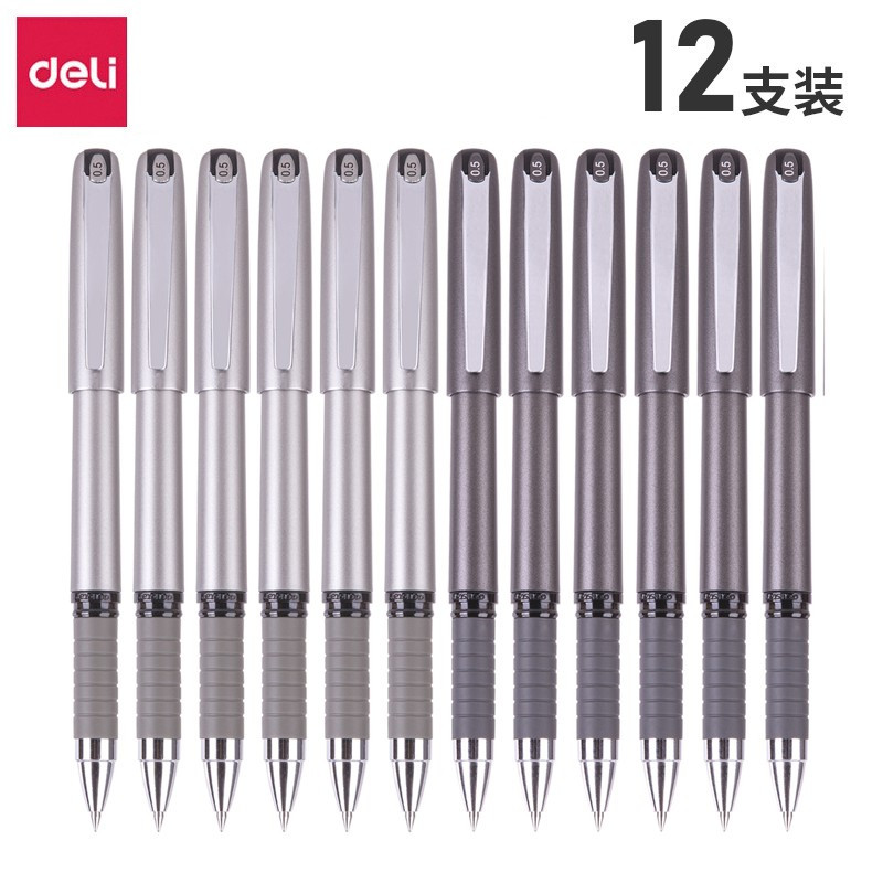 自营 得力 【顺滑之星】乐素臻顺滑中性笔 0.5mm子弹头按动笔金属 喷漆黑色 12支/盒A12¥44.58热销中