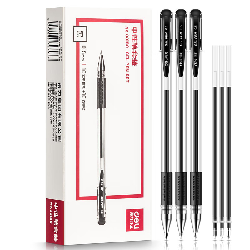 自营 得力(deli)办公中性笔套装 0.5mm子弹头 10支 签字笔+10支笔芯33189¥16.03热销中