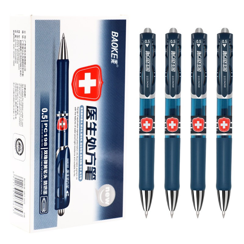 自营 宝克(BAOKE) PC198 0.5mm 蓝黑色处方笔按压式中性笔 签名笔 水笔 12支/盒¥19.47热销中