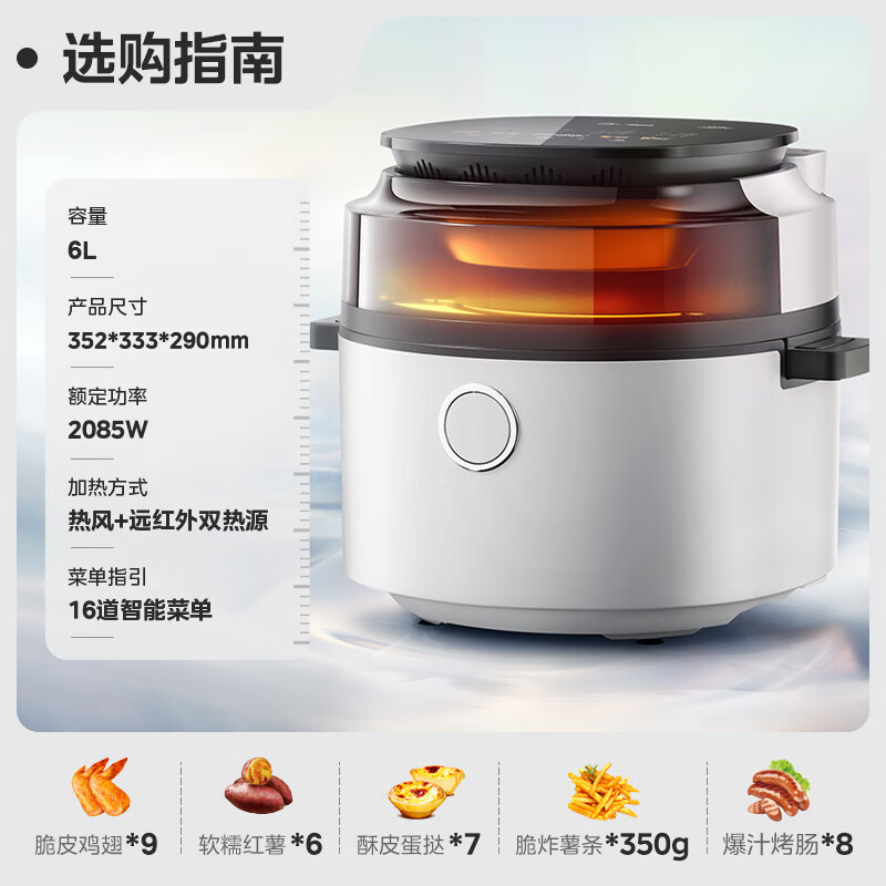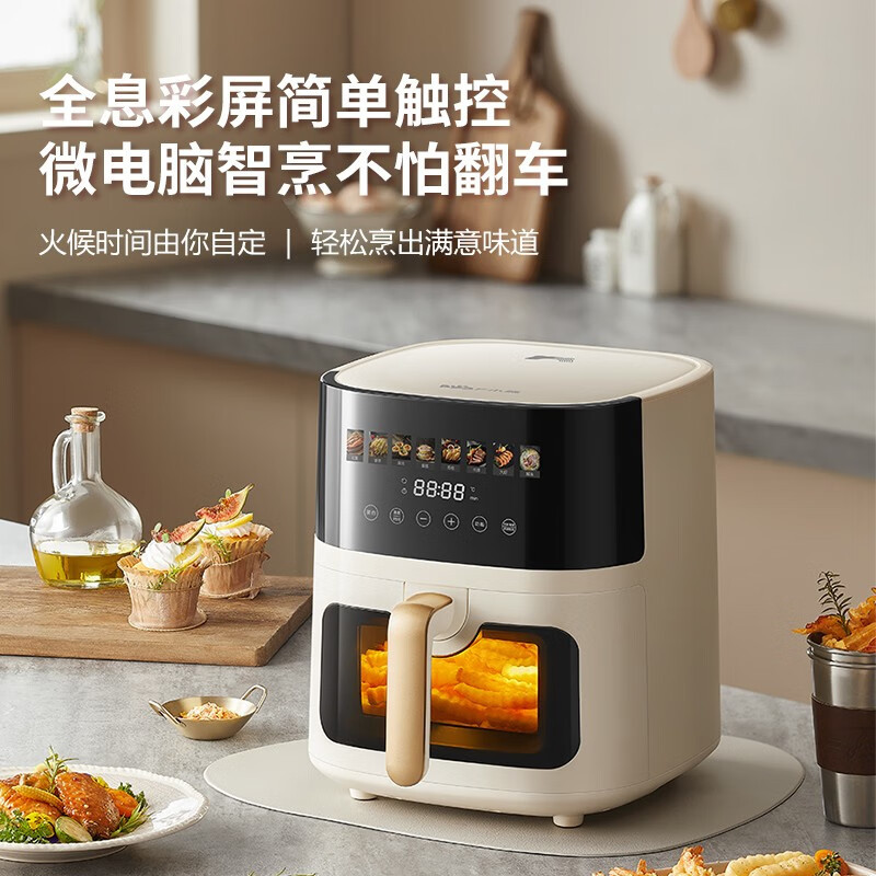 自营 小熊(bear)空气炸锅 全自动 家用 可视 聚风环包裹烤 6L透视免翻面 QZG-E16H3 米白色 / 台¥282.00热销中