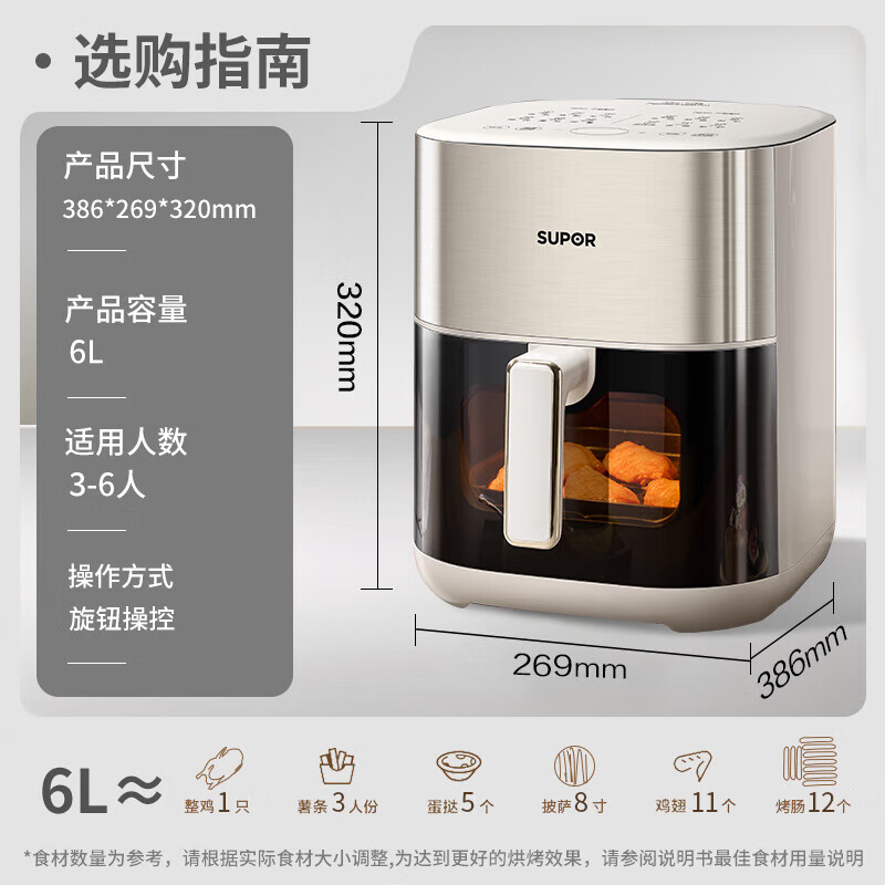 自营 苏泊尔(SUPOR) 空气炸锅家用6L大容量 KD60D79¥432.00热销中