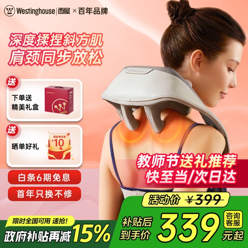 自营 西屋(Westinghouse)美国西屋UK5颈椎按摩器肩颈按摩器按摩披肩揉捏斜方肌腰部按摩仪教师节生日礼物实用送老师男¥399.00热销中