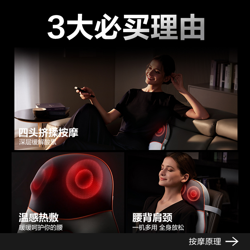 自营 倍轻松(breo)腰部按摩器BM-312按摩垫靠垫 背部按摩器按摩仪揉捏热敷 腰背按摩器正反揉腰开背 灰白/台¥430.80热销中