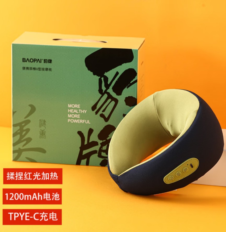 自营 豹牌 U型颈椎按摩枕高回弹海绵仿真揉捏红光加热 BP-U2¥280.80热销中