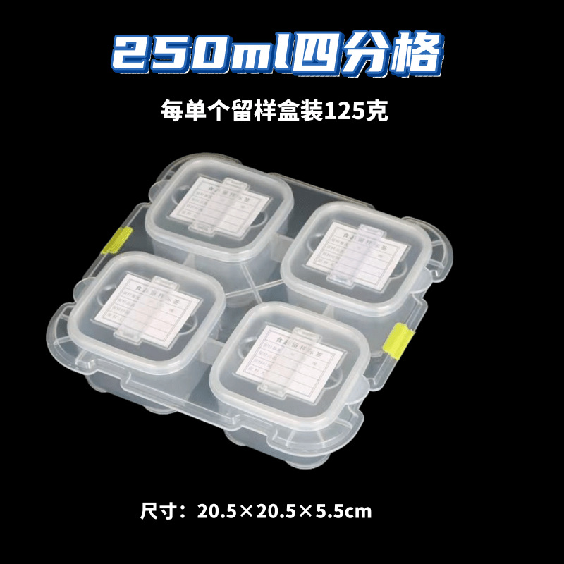 自营 777食品留样专用盒酒店餐厅食堂幼儿园食物样品试吃盒小号菜品保鲜盒*5个-250毫升四分格留样盒¥91.37热销中